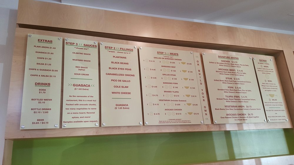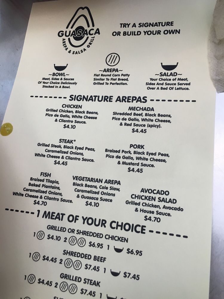 Guasaca is a Venezuelan salad restaurant located in Durham, NC. The menu offers signature items like the Crispy Chicken Arepa and the Guasaca Shredded Chicken Arepa, as well as build-your-own options. Customers praise the fast service, flavorful dishes, and variety of vegetarian and gluten-free options. The casual and modern ambiance makes it a great spot for lunch or dinner. With dishes like the Grilled Steak Arepa and Natilla dessert, Guasaca provides a unique dining experience that's perfect for foodies looking to try something new. The customizable menu allows guests to tailor their meal to their preferences, ensuring a satisfying dining experience for all. Next time you're in the Triangle area, be sure to visit Guasaca for a delicious and filling meal.